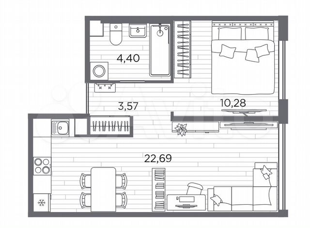 1-комн. кв., 40.9 м², 1/5 этаж