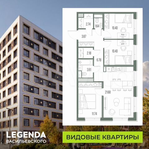 2-комн. кв., 61.1 м², 21/22 этаж