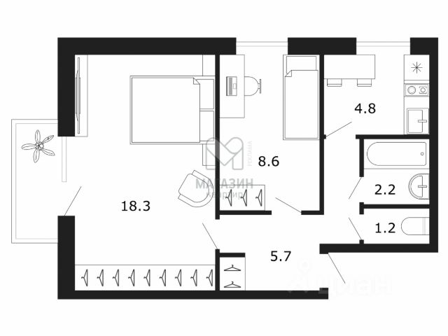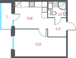 1-комн. кв., 34.24 м², 9/9 этаж