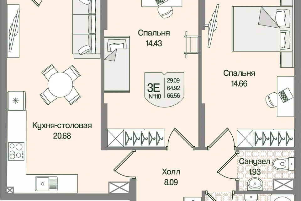 2-комн. кв., 66.55 м², 2/4 этаж