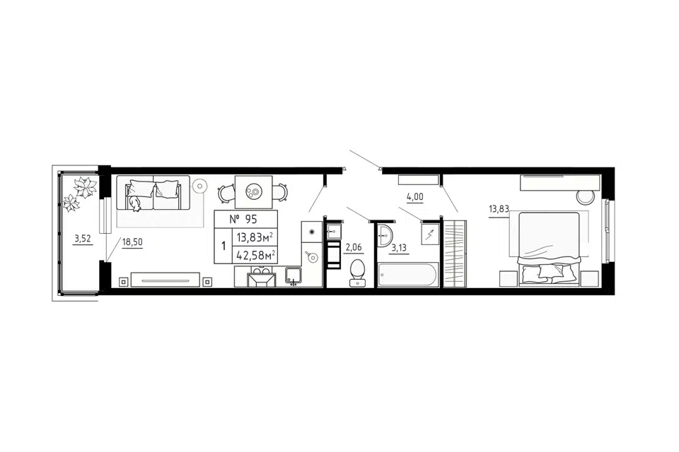 1-комн. кв., 42.58 м², 2/4 этаж