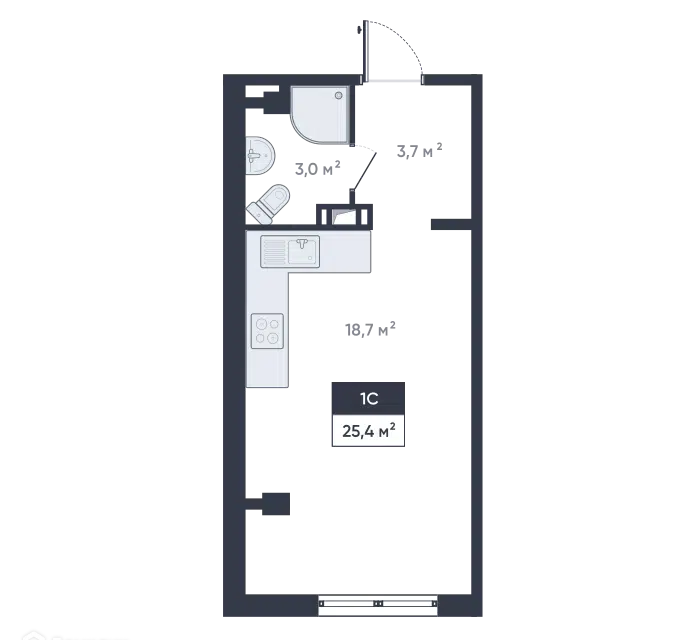 Студия, 25.4 м², 8/18 этаж