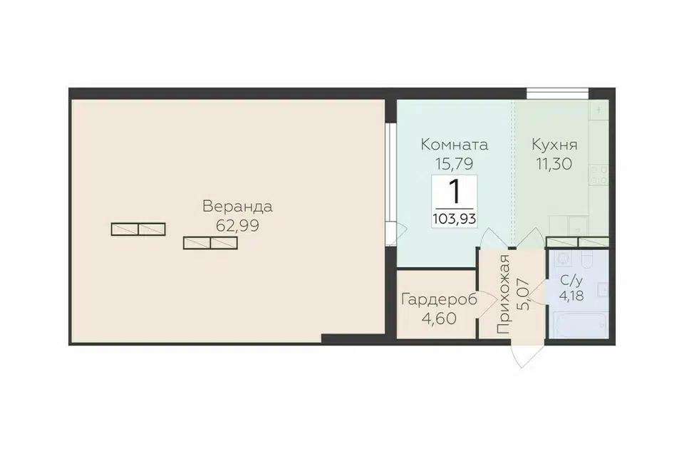 1-комн. кв., 103.93 м², 7/9 этаж