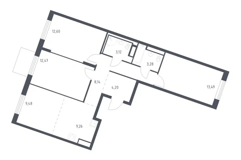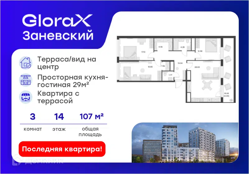 3-комн. кв., 107.8 м², 14/14 этаж