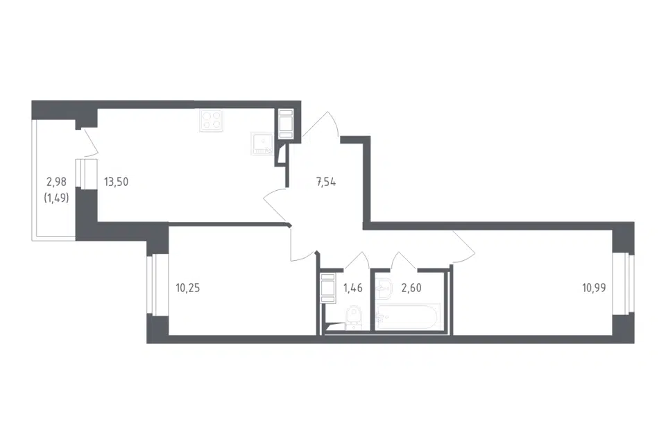 2-комн. кв., 50.07 м², 10/12 этаж