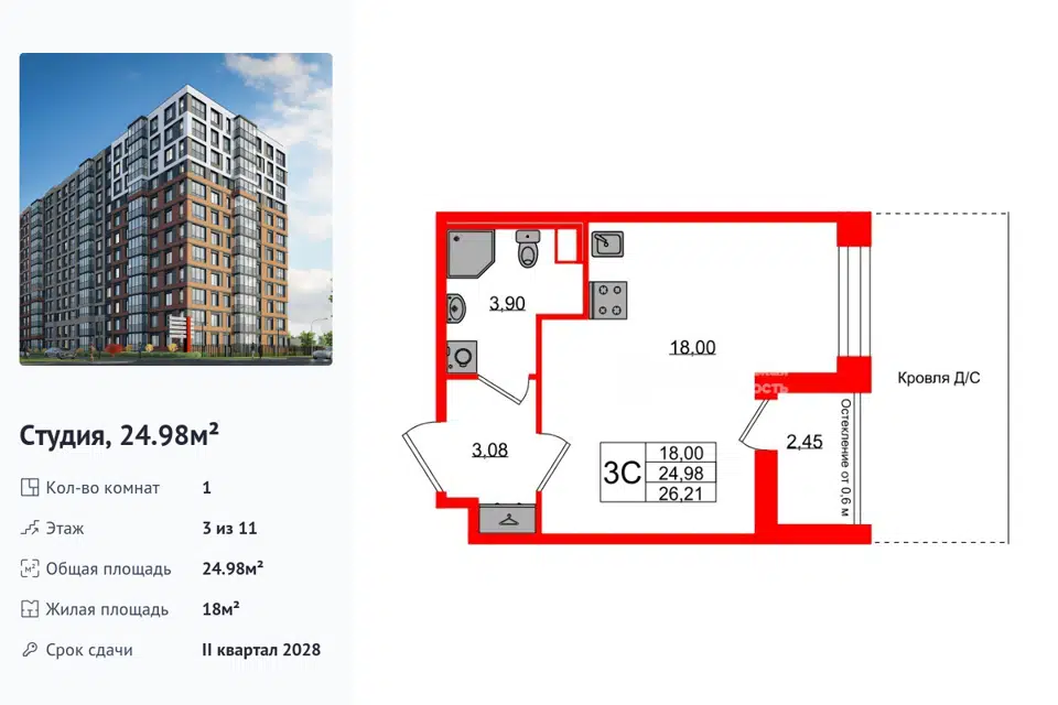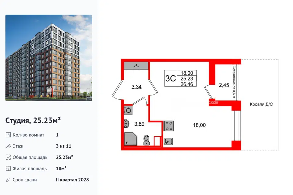 4 из 5 хозяев не хотят сдавать квартиру людям с питомцами, но мы знаем, как грамотно их переубеждатьСтудия, 25.52 м², 3/17 этаж