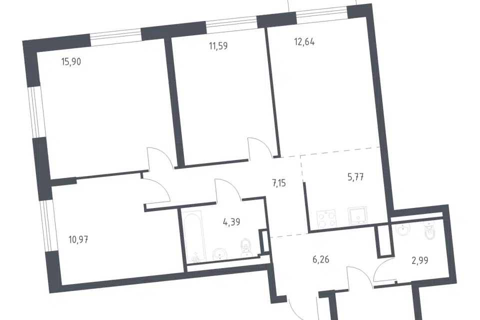 3-комн. кв., 82.98 м², 4/11 этаж