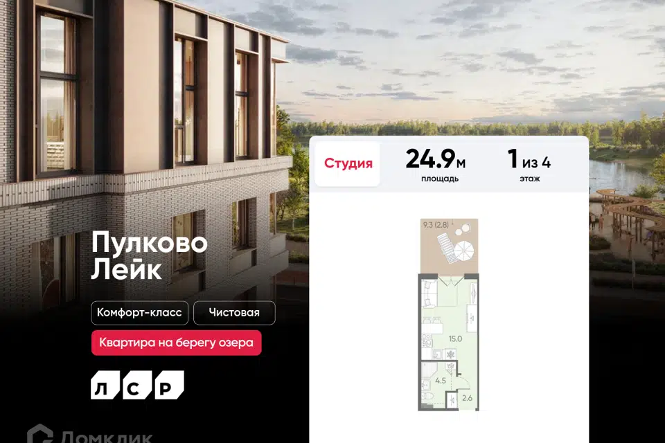 Студия, 24.9 м², 1/4 этаж