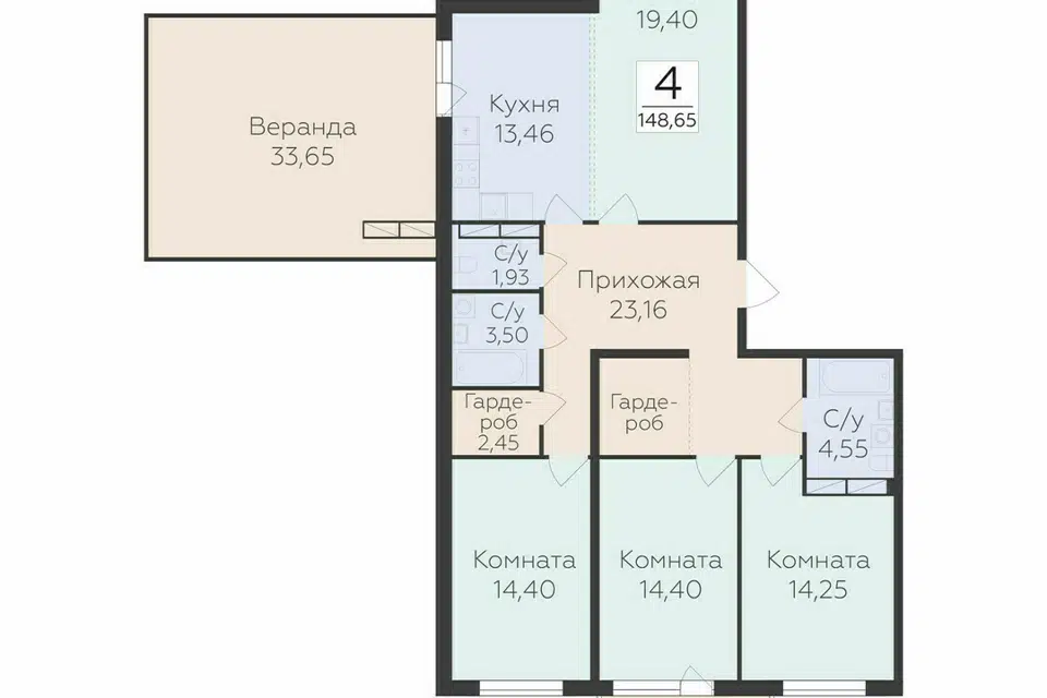 4-комн. кв., 148.65 м², 8/9 этаж
