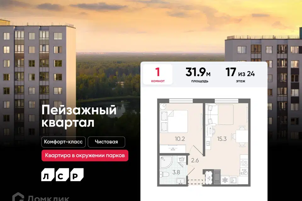 1-комн. кв., 31.9 м², 11/24 этаж