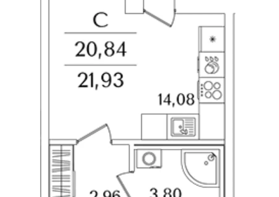 Студия, 22.4 м², 3/8 этаж