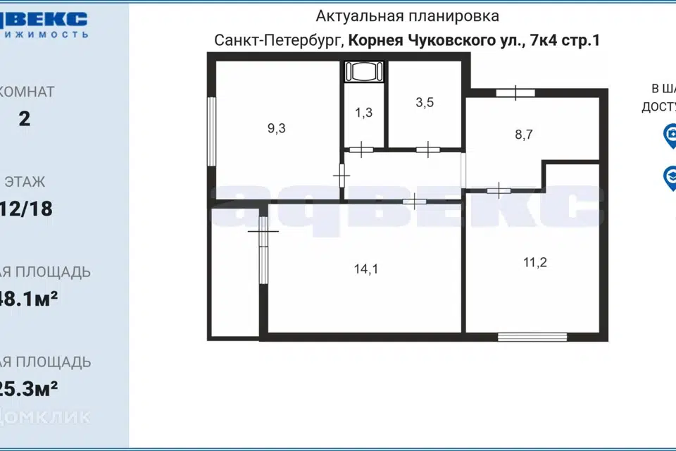 2-комн. кв., 48.1 м², 12/18 этаж