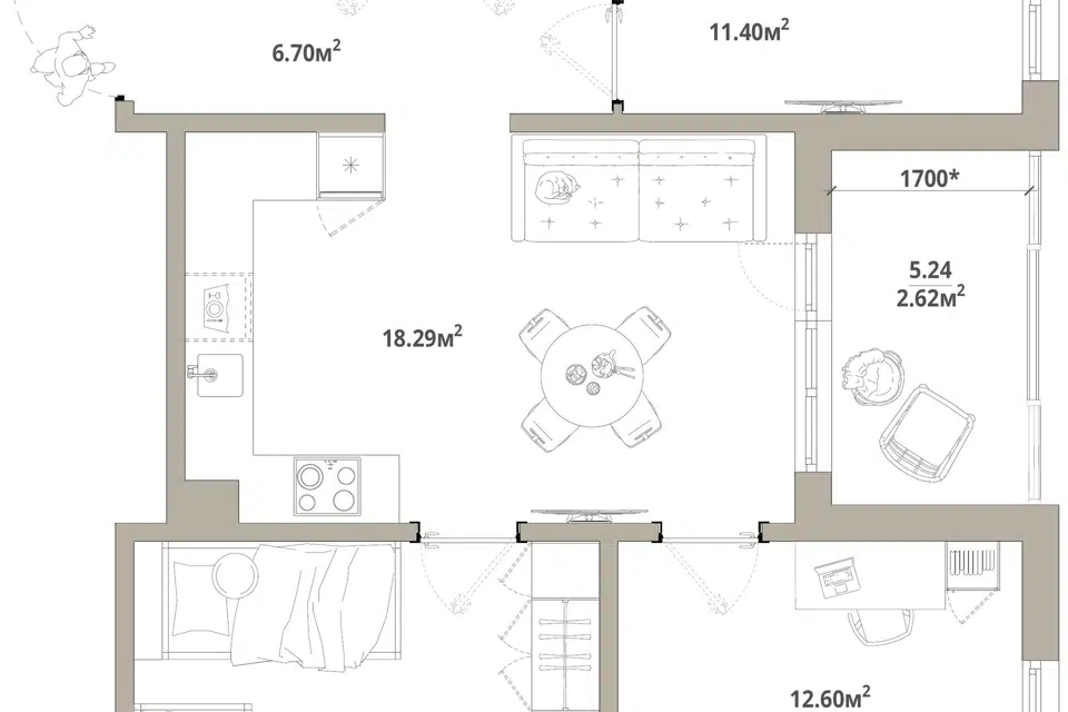 Студия, 25.95 м², 6/12 этаж