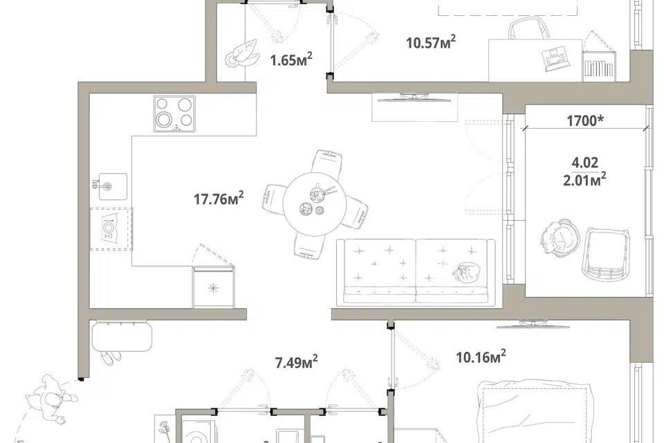 2-комн. кв., 63.26 м², 10/12 этаж