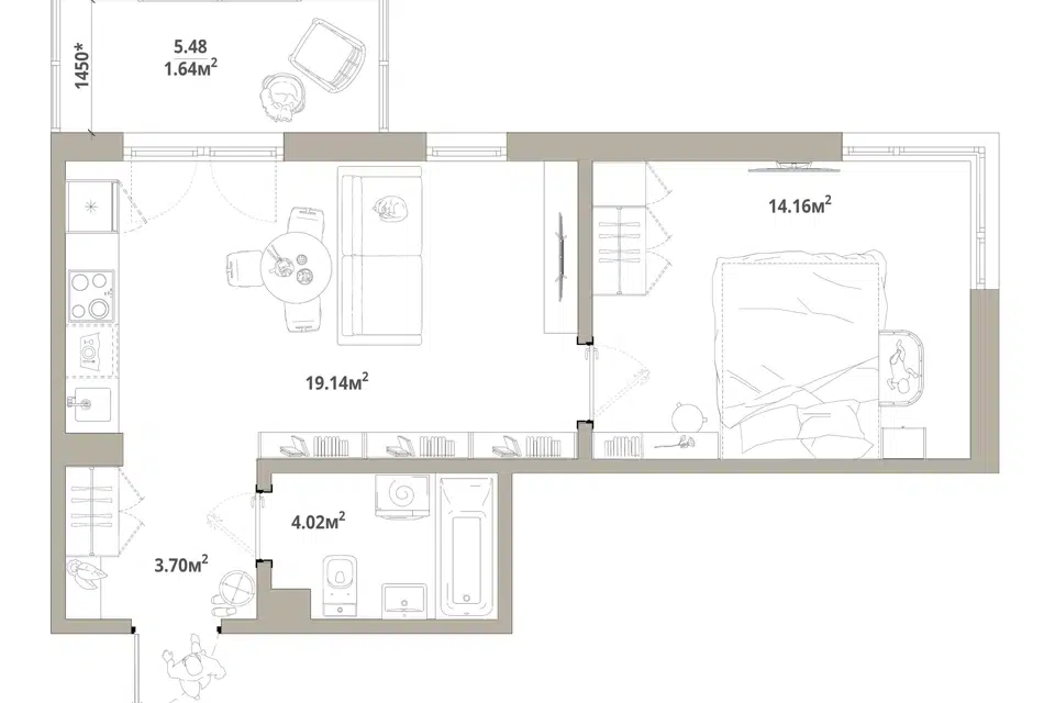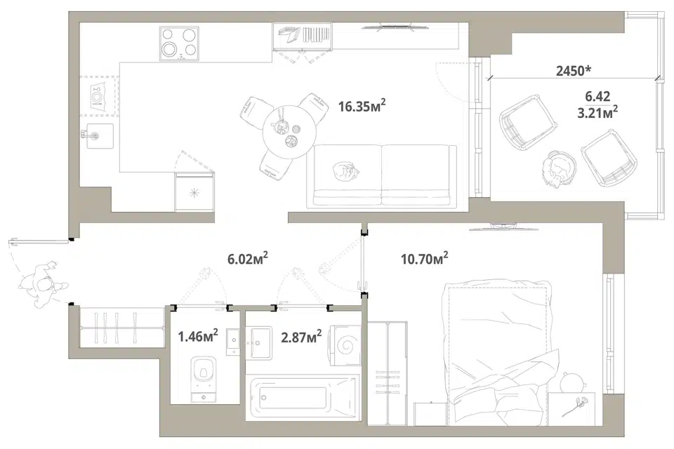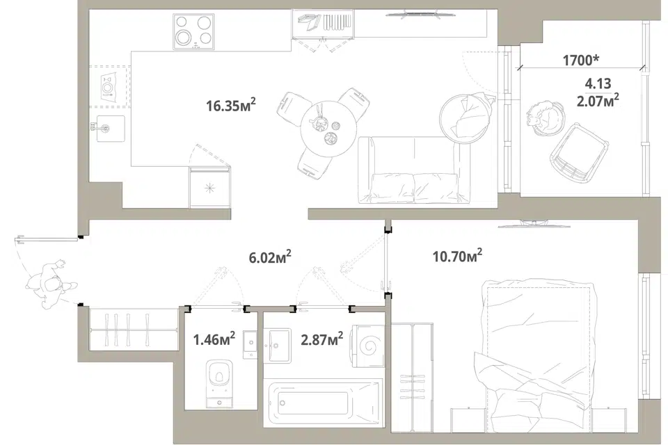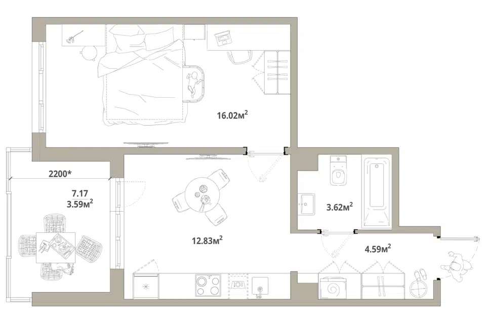 1-комн. кв., 41.9 м², 7/16 этаж