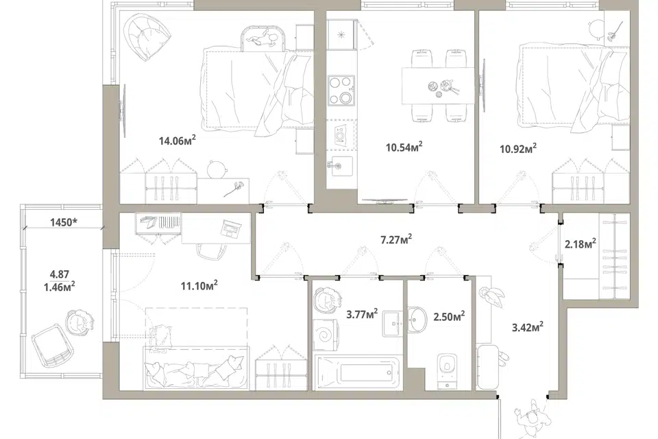 3-комн. кв., 106.8 м², 14/24 этаж