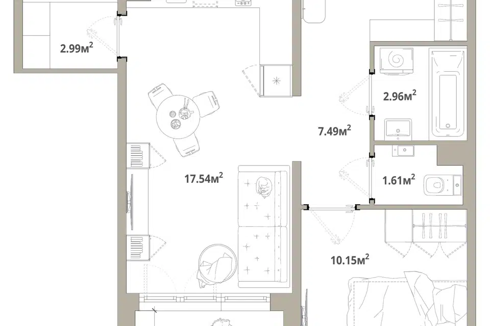 1-комн. кв., 54.2 м², 2/4 этаж