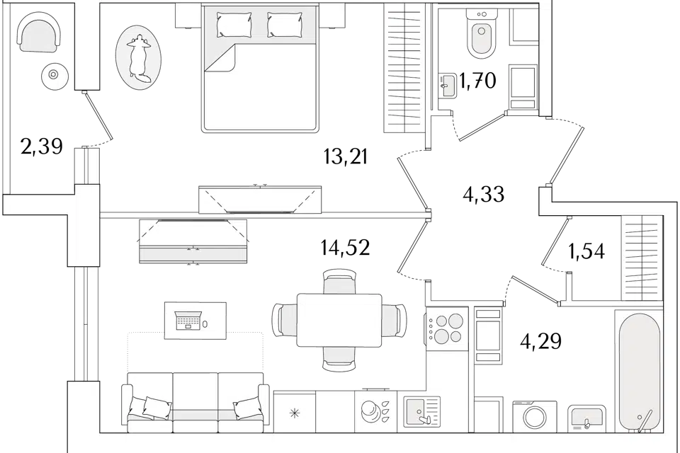 1-комн. кв., 40.79 м², 5/9 этаж