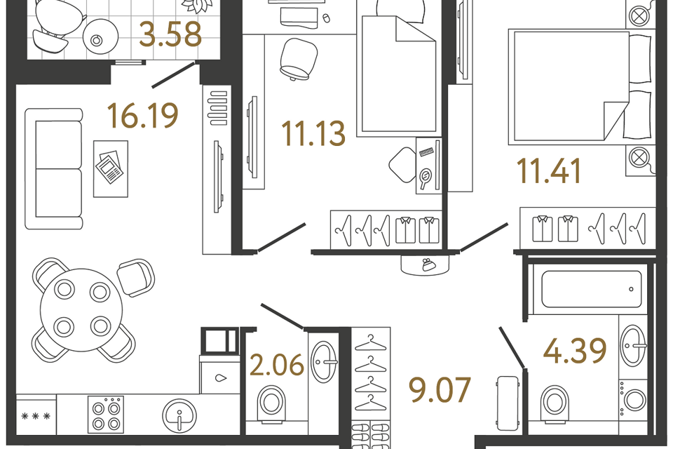 3-комн. кв., 69.1 м², 7/12 этаж