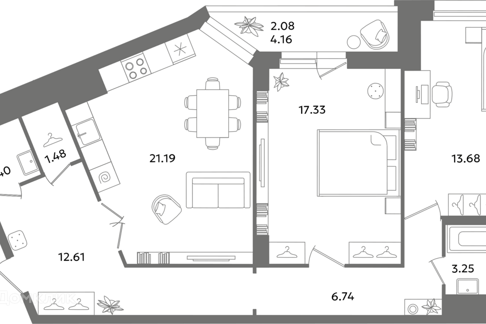 2-комн. кв., 57 м², 19/25 этаж