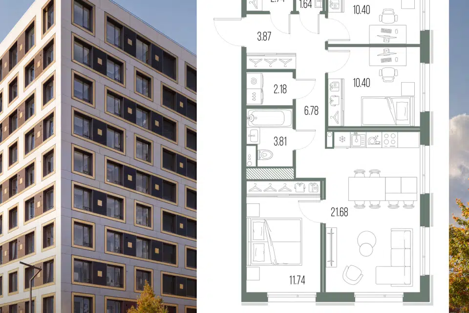3-комн. кв., 75.24 м², 4/10 этаж
