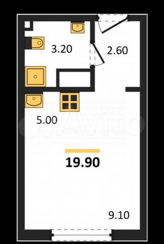 Студия, 13.3 м², 2/6 этаж