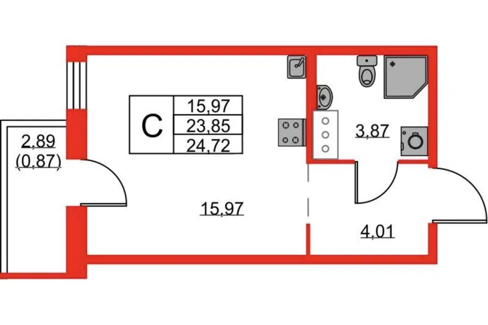Студия, 13.5 м², 3/6 этаж