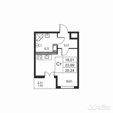 Студия, 25.2 м², 7/8 этаж