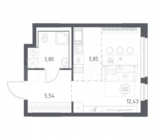 Студия, 24.4 м², 12/19 этаж