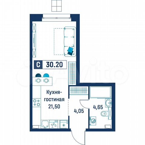 Студия, 21.7 м², 9/9 этаж