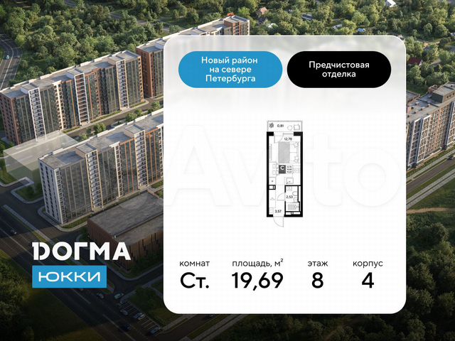 Студия, 19 м², 14/18 этаж