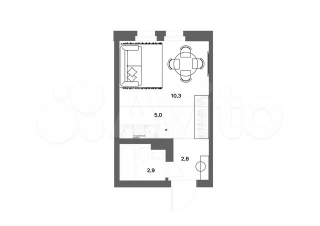 Студия, 15.6 м², 2/2 этаж