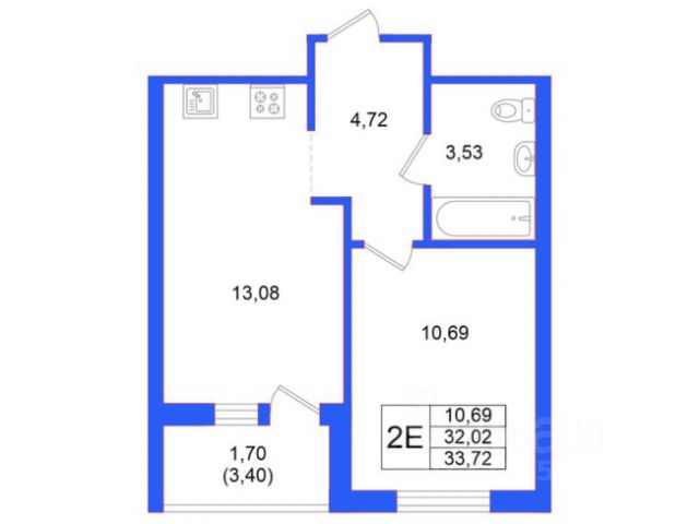 1-комн. кв., 32.4 м², 10/17 этаж