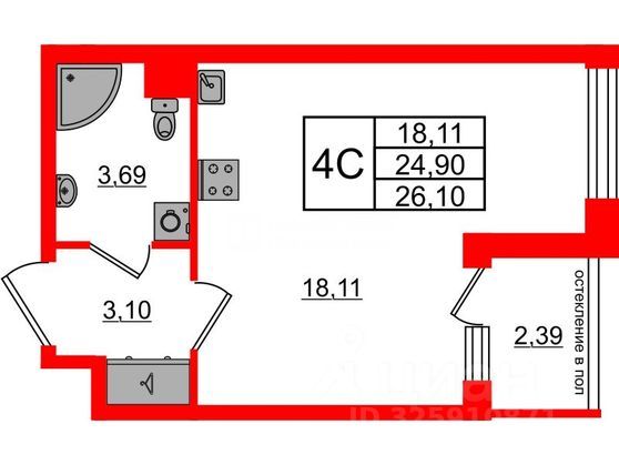 Студия, 25 м², 4/8 этаж