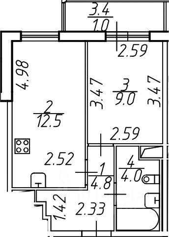 1-комн. кв., 31.4 м², 4/4 этаж