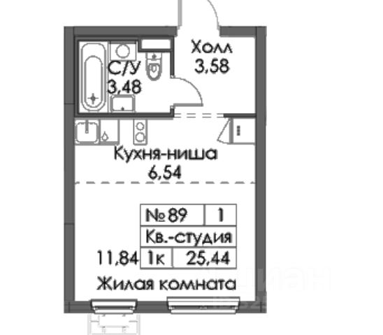 Студия, 24 м², 9/12 этаж