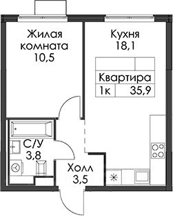 1-комн. кв., 37.9 м², 18/18 этаж