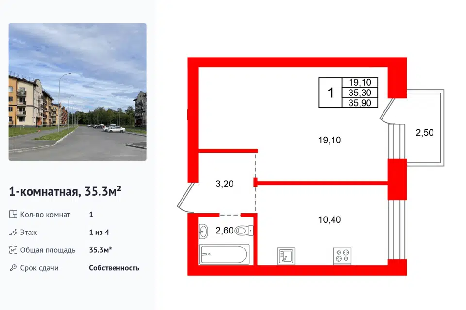 1-комн. кв., 35.8 м², 4/5 этаж