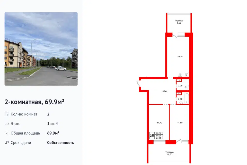 3-комн. кв., 65.8 м², 5/5 этаж