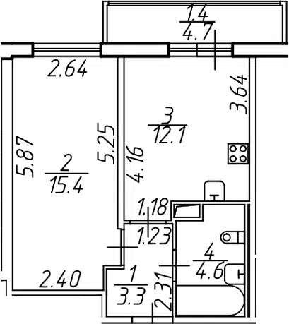 1-комн. кв., 31 м², 2/4 этаж