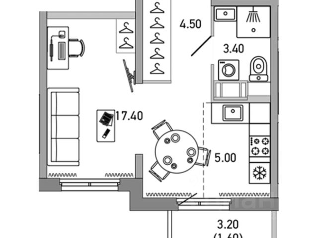 Студия, 31.9 м², 13/17 этаж