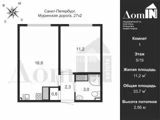 1-комн. кв., 37.9 м², 2/16 этаж