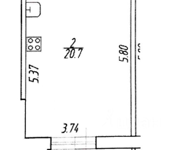 Студия, 13 м², 4/4 этаж