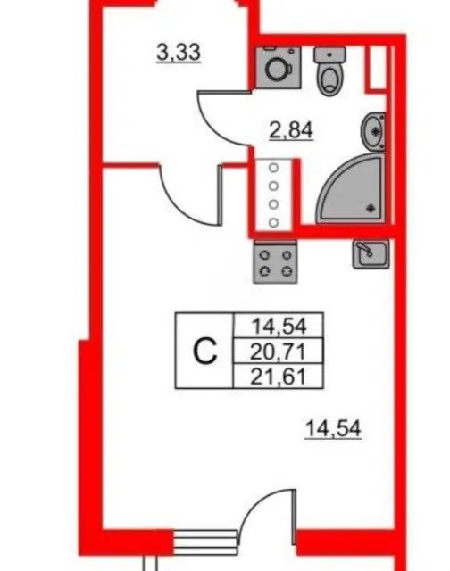 Студия, 21.61 м², 11/18 этаж
