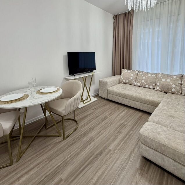 Отделка от застройщика качественная, выполнена в светлых тонах. Квартира очень уютная.
