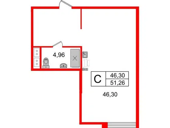 1-комн. кв., 50.8 м², 10/15 этаж