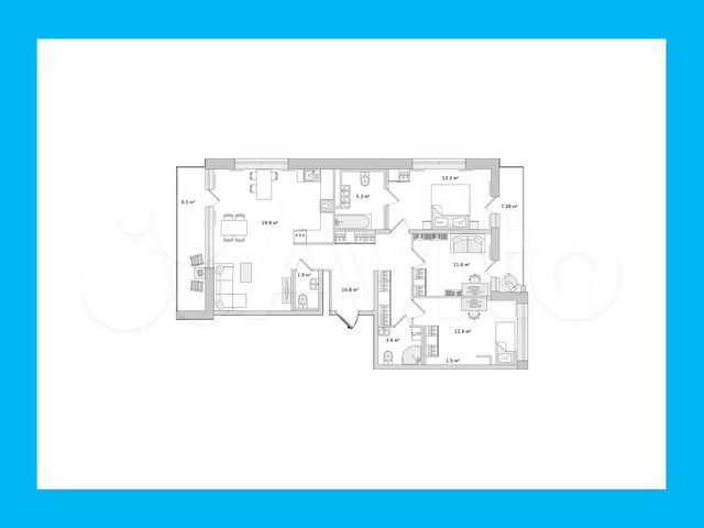 2-комн. кв., 56.9 м², 1/8 этаж