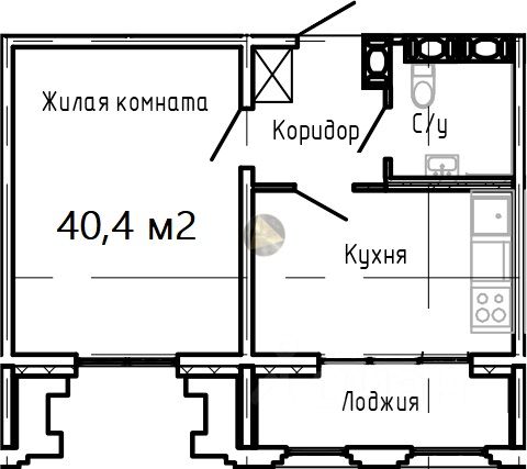 1-комн. кв., 40.4 м², 18/25 этаж