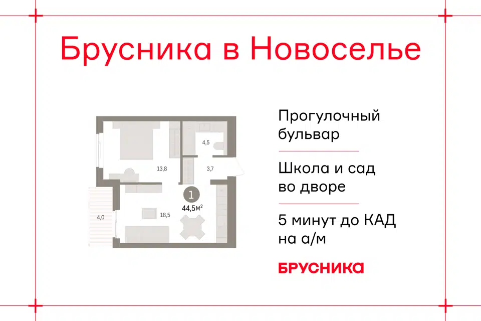 1-комн. кв., 44.47 м², 6/9 этаж