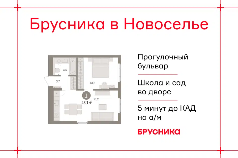 1-комн. кв., 43.15 м², 3/9 этаж